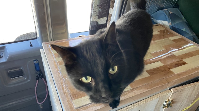 We left Allyson’s and spent the night at Chateau Walmart in Lunenburg, MA. This was a means to an end, both a supply run before we started our road trip south, and a staging area close to where we would pick up our cat, Lister, the following morning. We grabbed Lister as we made our escape from the burning apartment, so he was just fine, if a bit scared (so were we). We had nowhere to keep him, though, so Elana, my ex, took him in while we got the van into good enough shape to live in. He’s lived with her and the other cats before, so at least there were familiar faces, if not our own.