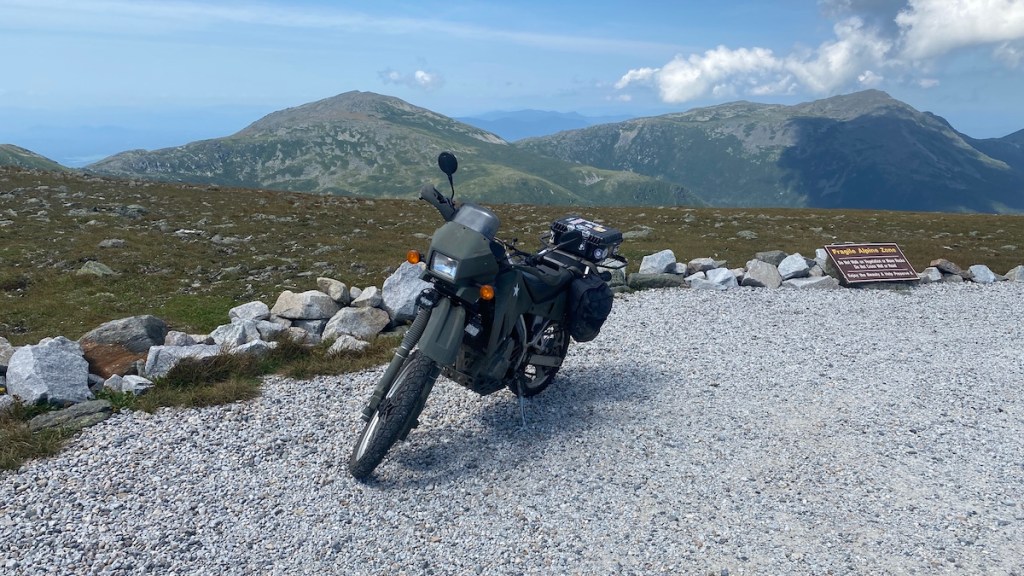 Friday and Saturday were half days, so by 1pm I was free for the rest of the day. On Friday I rode my motorcycle up the mountain, because I could. Up there, I parked next to another Kawasaki KLR650. As I was suiting up to leave, I met the owner, Chandler, who’s on quite a journey of his own. He came to New England after leaving Indianapolis, Indiana, rode to the extremities of Maine, then to Mount Washington. His destination is Kentucky. Unlike me, who’s glamping in a van, he’s carrying everything he needs on his KLR. That’s hardcore. He asked if I’d like to ride down the mountain together, so we did. We particularly enjoyed the short dirt section, as traffic ahead of us parted like the Red Sea and let us enjoy it. I took him for a tour of the pit area, and then he hit the road for Vermont.