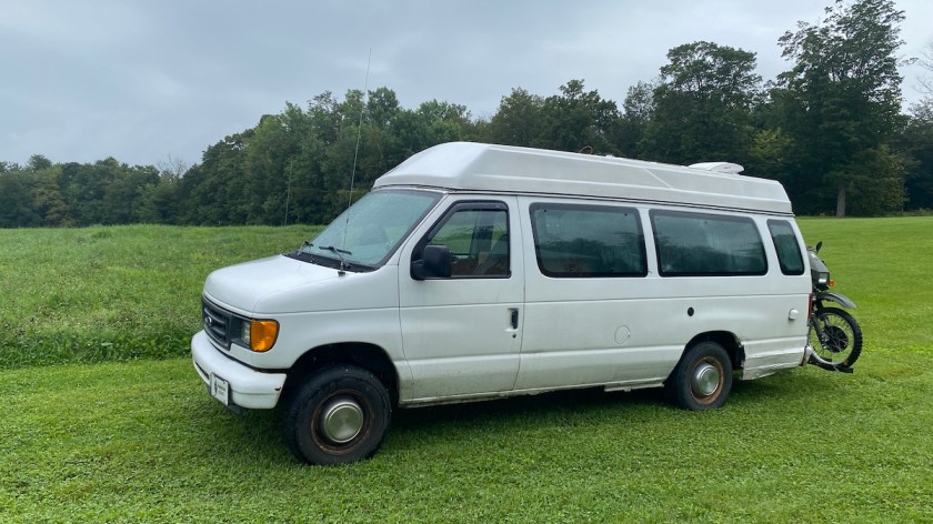 ANYWAY… This isn’t a particularly exciting place to be, and that’s perfectly okay. It’s a place I can spend a couple of days, get some work done (the included WiFi is excellent), and figure out where I’m going from here. It’s supposed to rain pretty much the whole time I’m here, unfortunately, so it’s not worth unloading the bike and taking some rides. I’ve been here before, though, so it’s not a huge loss. I’m just down the street from the Cummington Fairgrounds, where I won my class at the one and only rallycross I drove in my ex-cop Crown Vic. I felt like Sheriff Roscoe P. Coltraine in hot pursuit of them Duke boys. That was a different life, but it’s a happy memory.