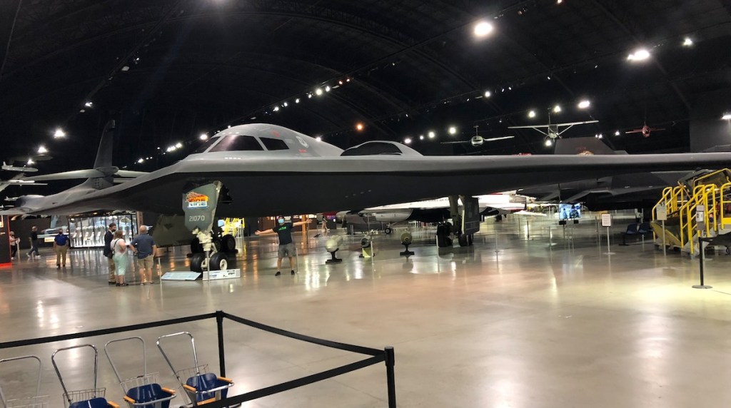 You probably can’t even see me under this B-2, the only one in a museum. Part of the wing suffered some kind of thermal damage in testing making it no longer airworthy, so it sits here instead.