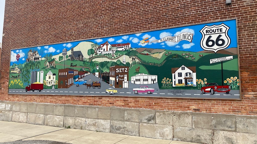 There’s not a lot in Elkhart, but it’s a perfect example of the sort of town that Route 66 helped to grow, and that fell when the interstates bypassed it. This mural shows an idealized version of what the town must’ve been like at its peak. It’s a good way to remember it.