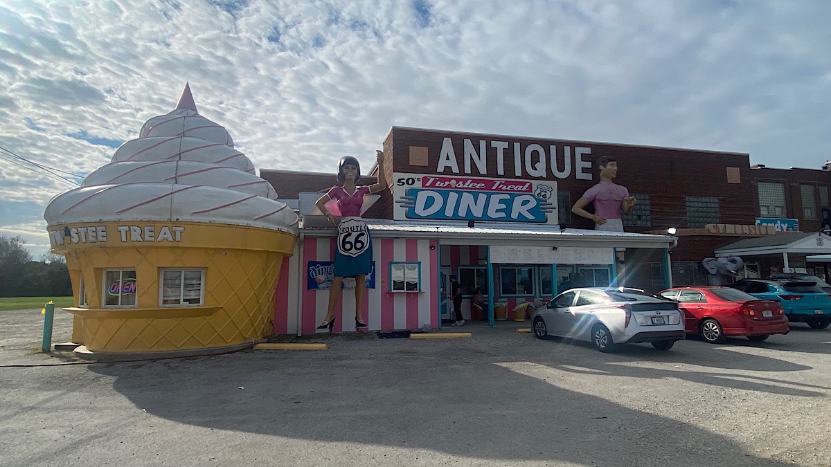 After another quiet night at Chateau Walmart in Lincoln, it was back on the road for us. We weren’t quite done with Lincoln yet, though. On our way out of town we stopped at the world’s biggest covered wagon. As you do, at least when you’re traveling Route 66.