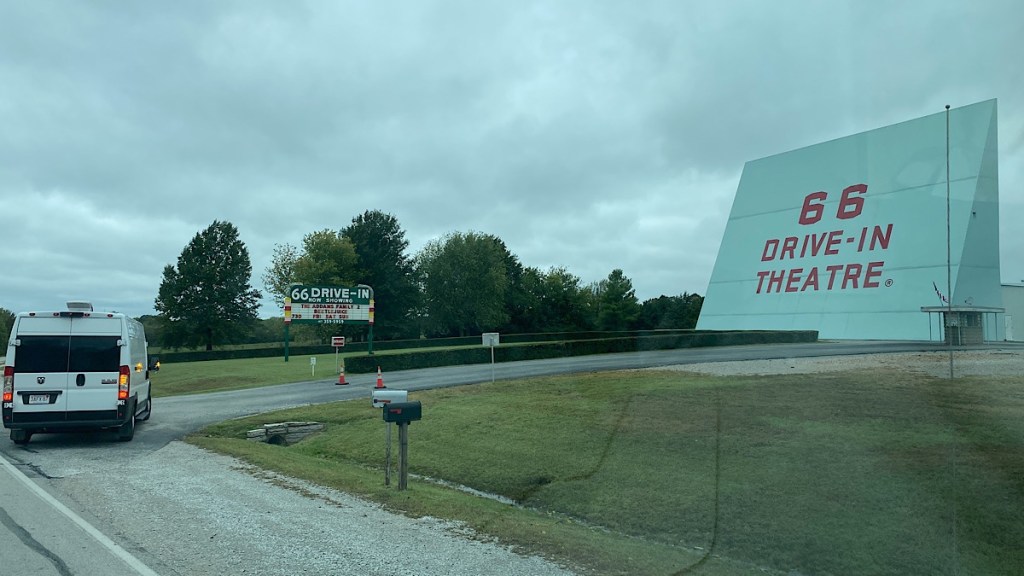 This is yet another iconic location on Route 66. Unlike many other places, this one is still alive and well. They’re fully operational, as you can see from the movie listings on their sign.