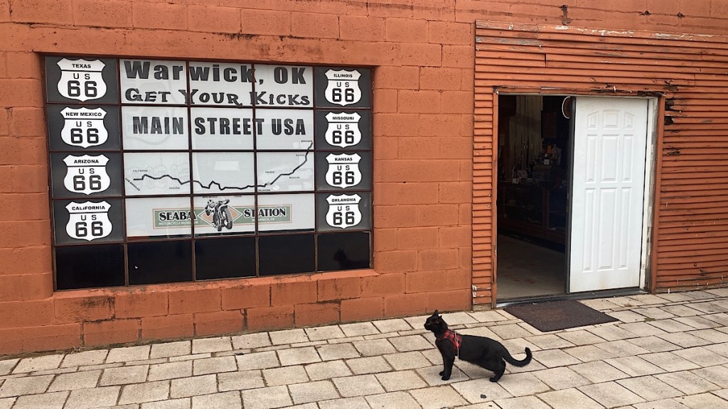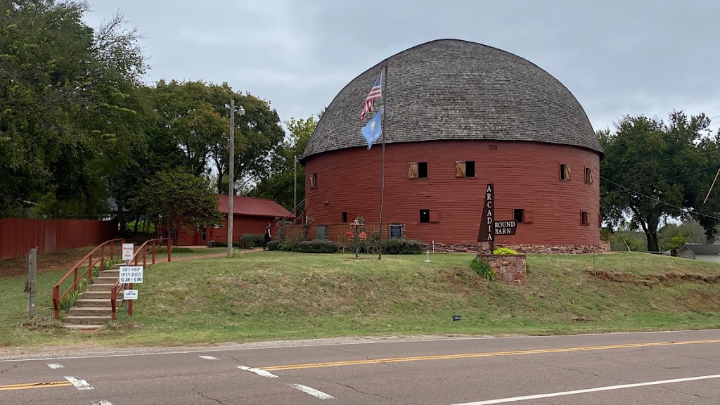 Down the road in Arcadia, the Round Barn is probably the most photographed barn on Route 66. By pure chance, Birgit and Tom arrived soon after I did, despite leaving me on my own at the motorcycle museum. It was open when I arrived, so I checked out the gift shop and museum inside. I also had a nice chat with the volunteer working there, who is a big fan of John Adams and wants to visit my native Massachusetts to see his home.