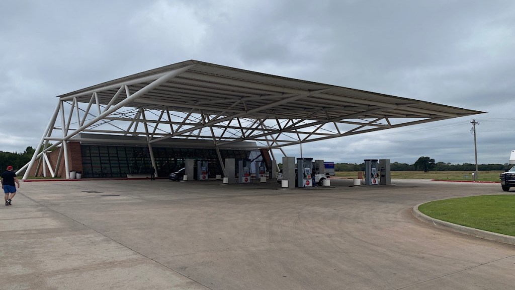 We actually got a fair bit past Tulsa before calling it a day yesterday. Our original plan was an overnight at Chateau Walmart in Sapulpa, just west of Tulsa. It was pretty busy, though, and there was no good place to park out of the way. So we continued on to another Walmart in Bristow, and found exactly what we wanted there.