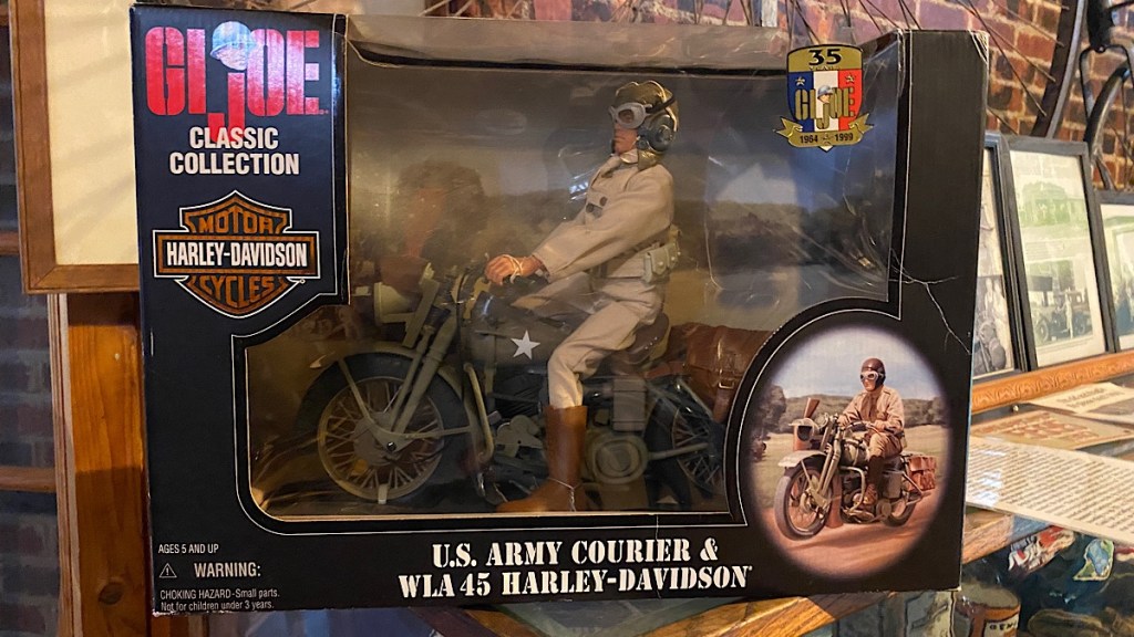 I especially liked this little gem, a GI Joe toy motorcycle. Look familiar? My Kawasaki KLR650 is painted up the same way. When I lived in New Hampshire, it even had the license plate GIJOE.