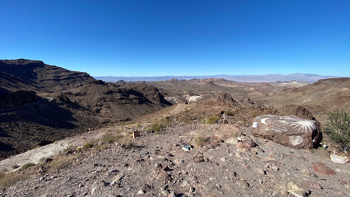 We pulled over at a parking area to take in the stunning view. We were surprised to walk to the top of the hill and see a variety of memorials up there.