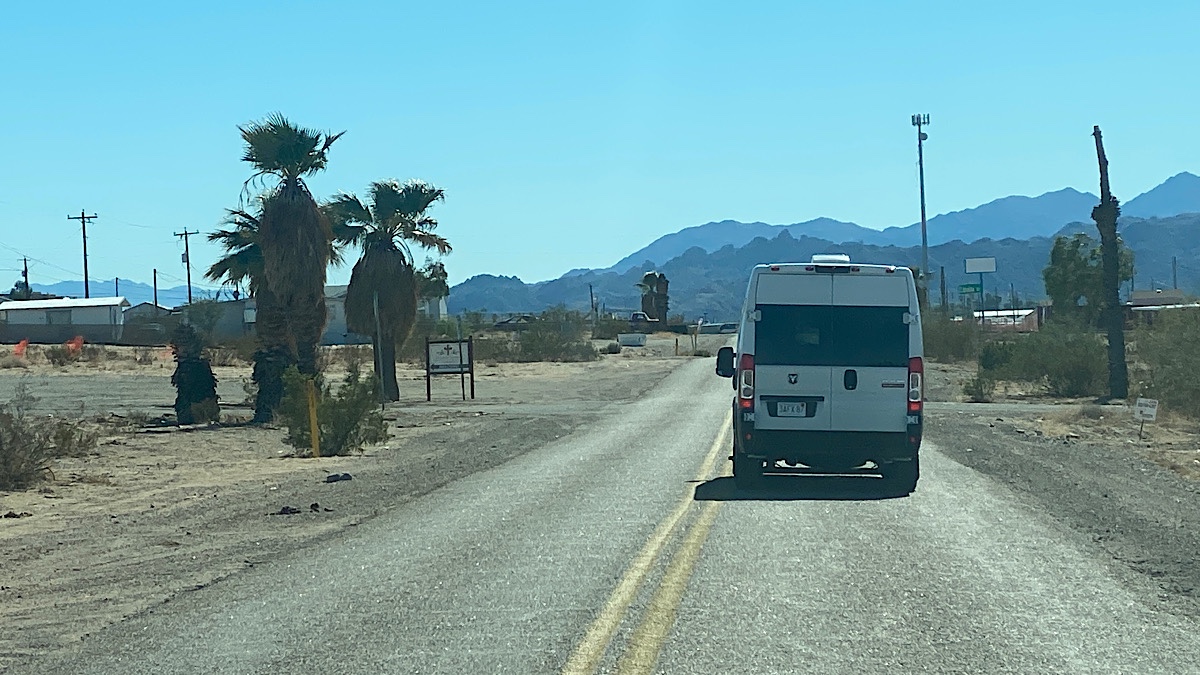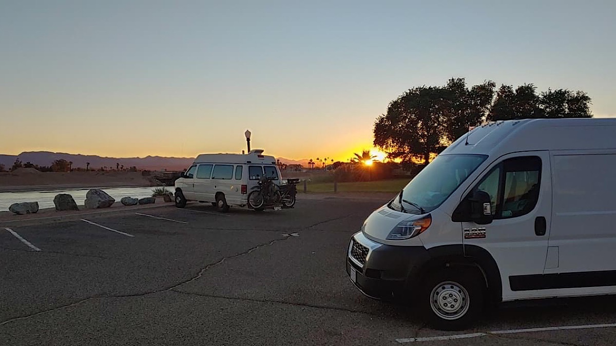 The next thing we knew, we were at the Colorado River, about to cross into California. We refueled on the Arizona side, then crossed into the final state of this journey. We soon pulled into a small parking lot overlooking the river that we found recommended on iOverlander as a good overnight spot. They were right.