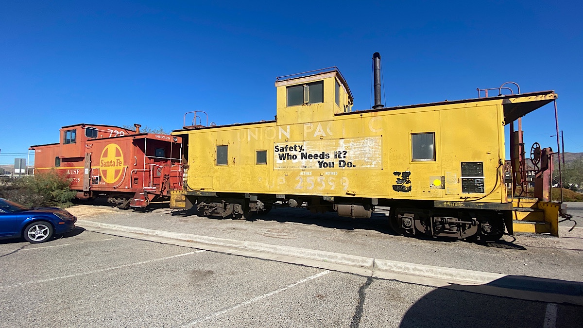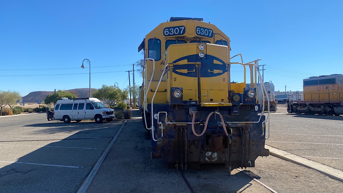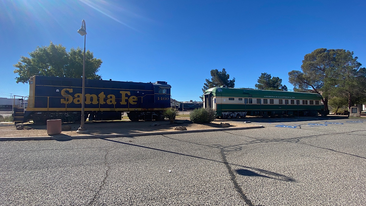 Google once again played games with me, taking me to places that didn’t exist, like the addresses of some murals on Main Street. It did find yet another Route 66 museum, but I found myself much more interested in the locomotives and train cars of the railroad museum, which was, of course, closed. Like Kingman, the classic Barstow train station is still in use today. I explored a bit, then moved on.