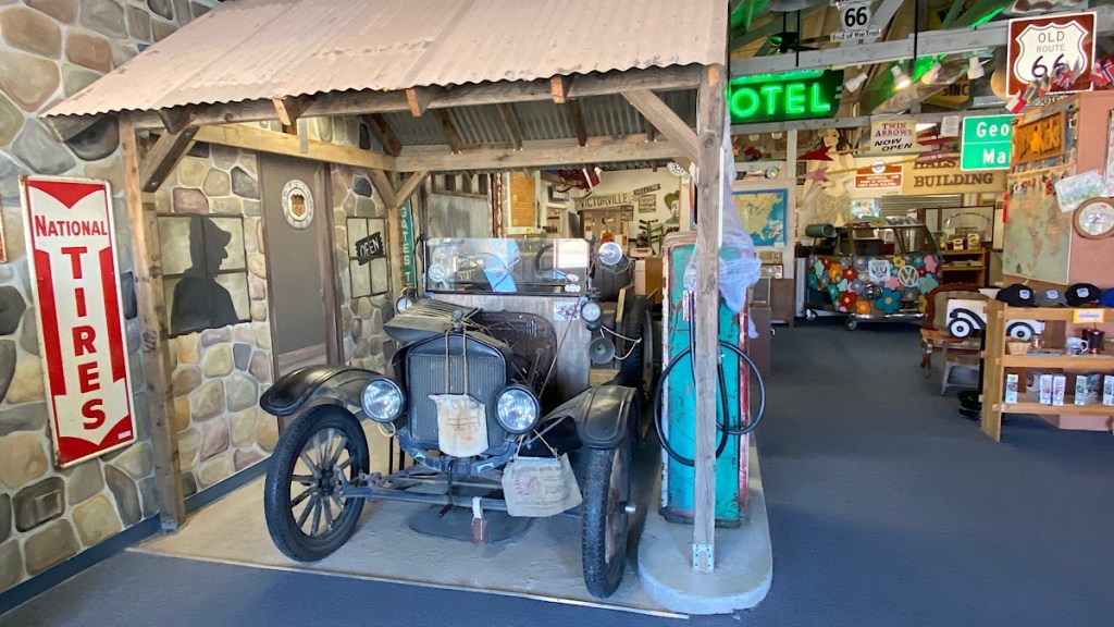 This one was mostly a collection of stuff from the early and mid 20th century. There wasn’t a lot of history of Route 66 itself, which is what I’ve been wanting to see from museums like these. Still, if you’re into old stuff, including a 1917 Model T Ford you can climb into, it’s worth a stop.