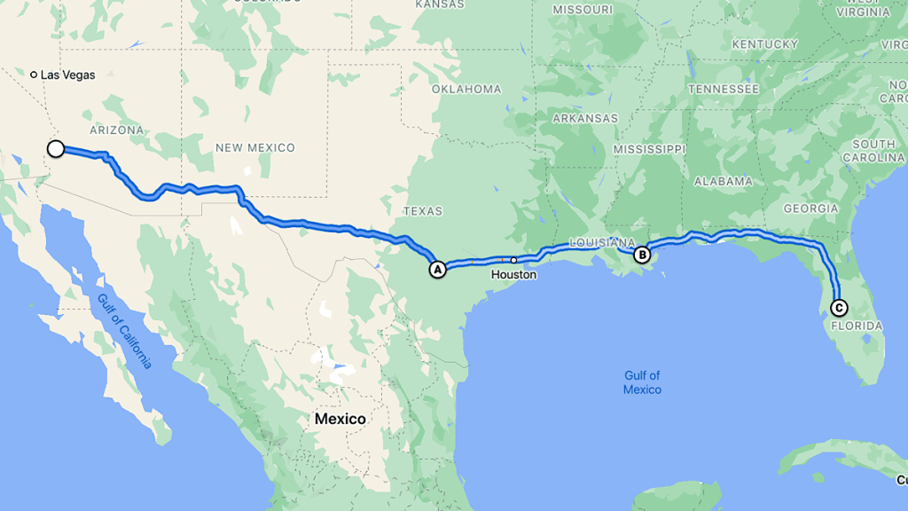 In this case, I’ll start making my way east along a very southern route, likely near Interstate 10, trying to stay as warm as possible. I’d visit friends in Texas. I’d see New Orleans. And I’d end up back in Florida, just a bit earlier than if I wait out the winter, then do my big loop of the US. Depending on timing, I can always do that big loop in reverse afterward. Or something else entirely. Who knows?