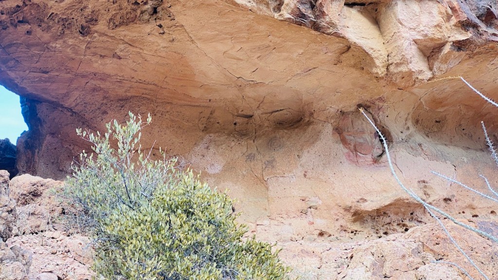 It’s clearly a picture of two hunters chasing an antelope. I’m not sure what the concentric circles mean — maybe the sun, or maybe the night sky, which is filled with stars and the Milky Way every night. Who knows how many hundreds, or even thousands, of years old this cave graffiti is. European and American settlers, even the Spanish who were out here in the 1500s, are relative newcomers to the area compared to whoever made this.