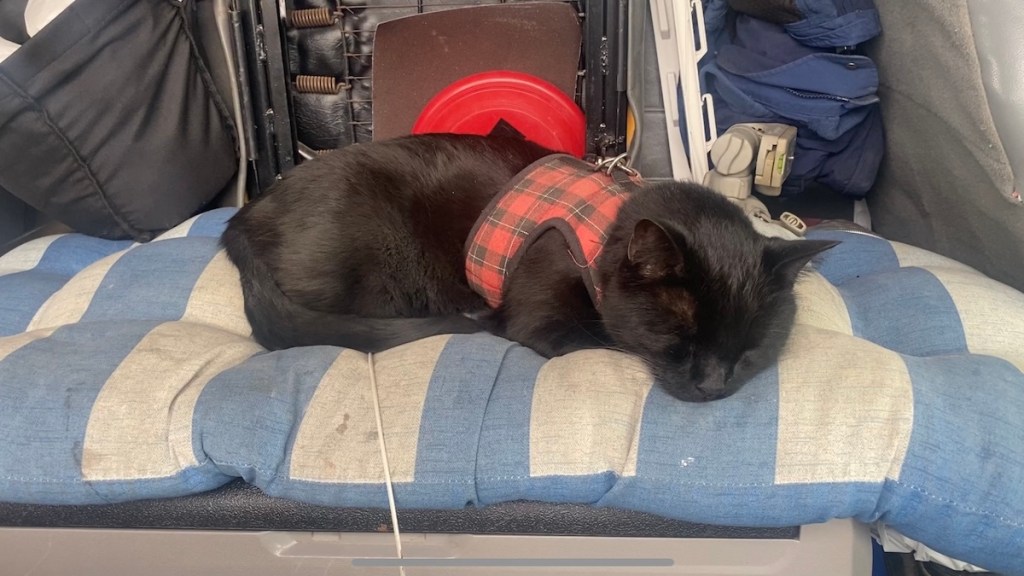 I rarely leave the back of my van open. It’s my bathroom, litter box, and dirty laundry, and 99.9% of the time people don’t want to see that. But in a situation like this, that’s exactly what people want to see! Plus, since they asked me to park nose-in, the open doors were a clear invitation to come and check out my van.