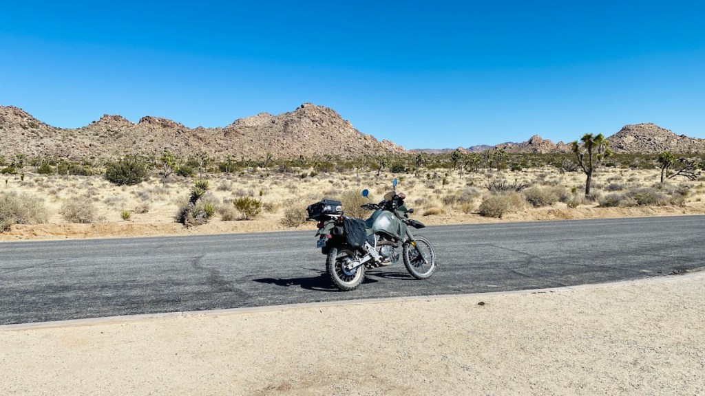 This was a game-changer. It wasn’t about the difficulty of the dirt riding, which was not very difficult at all. What changed was that instead of passing by the scenery, I was passing through the scenery. I was an active part of it. At times I had to adjust where in the lane I put my bike so that I wouldn’t get whacked by a Joshua tree on the edge of the road. It’s not that I was closer to nature, but directly in it. That, plus the almost complete lack of traffic on these roads less traveled, made this a much better way to see the park.