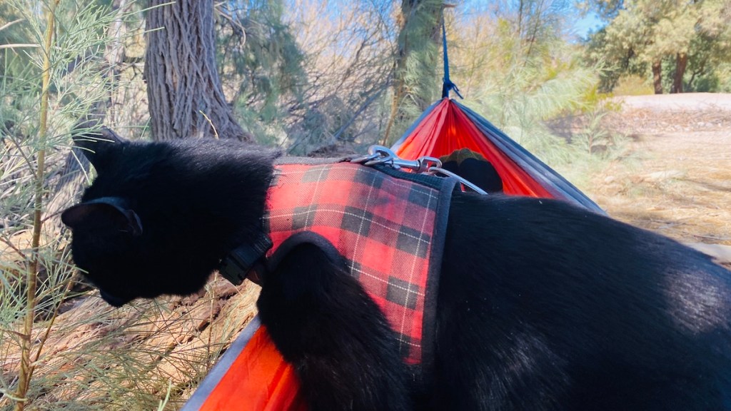Lister hopped in the hammock to visit, but it turns out all he was interested in was using me as a perch to chew on some new pine needles. I don’t know what this guy is thinking sometimes.
