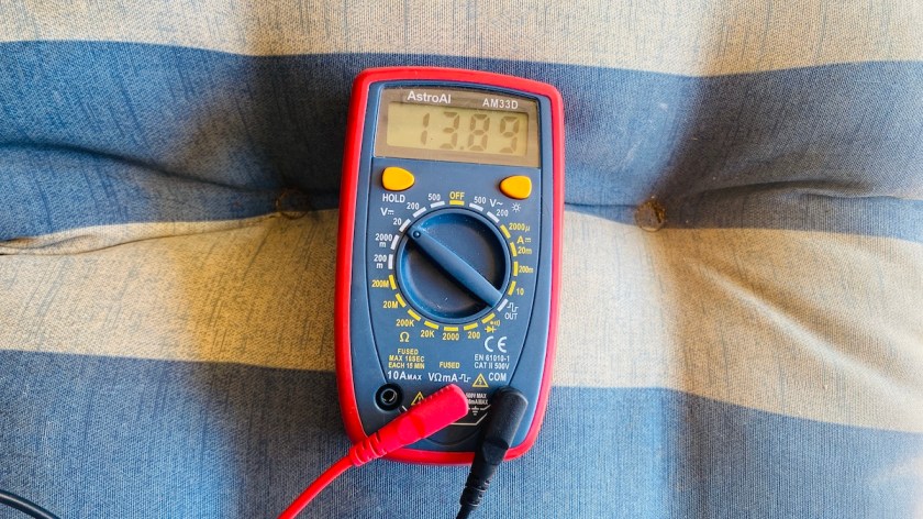 There I was, getting work done online when suddenly my “Smokey Da Van” WiFi network disappeared. My WiFiRanger Spruce router had shut off. I hoped it hadn’t bricked like my first one did. Soon I realized that it wasn’t the router, as the interior light I had rewired to the house batteries was also not working correctly. It turned on but glowed dimly instead of lighting up brightly as it should. I had an electrical issue.