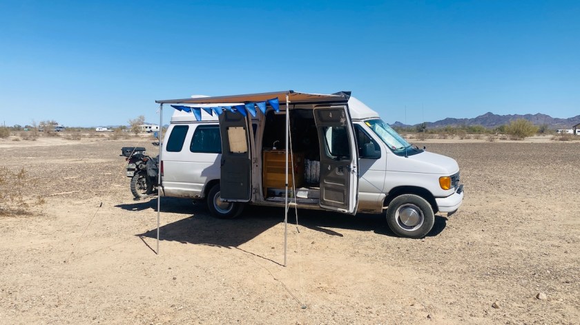 What’s next? Waiting in Quartzsite for a few days. While I still have the Escapees mail forwarding, I’m having them send all of the low-priority stuff they’ve been hanging onto for me to my new address in Quartzsite. I’m here now, and I can receive it here, so I might as well. I looked into ordering a few things off Amazon, but they’re going to take a week or two to arrive, and the third solar panel for my roof can’t even be delivered to BCM at all. I continue to wonder why, exactly, I have Amazon Prime. Anyway, after that, I’ll continue slowly heading to higher elevations before the temperature gets too hot here.