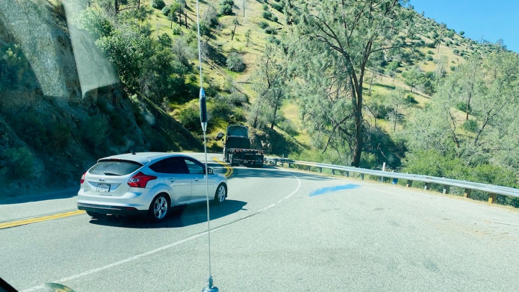 Highway 178 is narrow and twisty. Like much of California, the speed limit is 55, but you can’t even get going that fast much of the time, especially in a van and trailer like I’m driving. Fortunately, there are frequent pull-offs, as well as signs telling slow vehicles to actually use them and let faster traffic by. I have never received so many friendly toots of the horn or flasher blinks as I received on this drive after letting people pass. I have some issues with California, but this is one thing they get right most of the time. I certainly appreciate it when I’m on the motorcycle, trying to get around a slow-moving vehicle ahead of me, so turnabout is fair play.