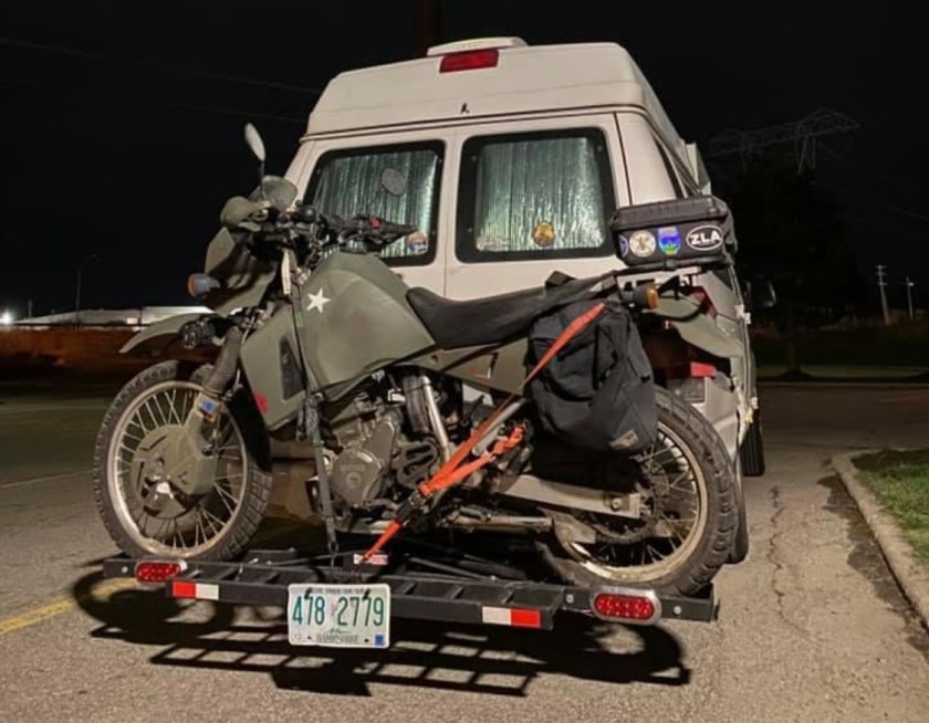 If you’ve been reading this, you know a lot has changed since then. I have Florida license plates now. Trisha hasn’t traveled with me since June. The motorcycle no longer hangs onto the back of the van for dear life, but has a cushy home of its own that I tow behind me. And oh, the places we’ve been.