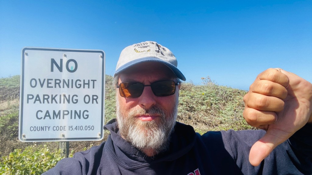 This part of California does NOT like van lifers. I was greeted in Monterey County by a sign saying “No overnight parking or camping next 72 miles.” The few and far between campgrounds are expensive, full, and booked through the end of time. The ones I saw along the PCH even prohibit vehicles longer than 24 feet, which rules out my van and trailer (the van alone is barely short enough to qualify). So this left me no choice but to blast through this area in a single day, rather than slowing down and enjoying the ride. My schedule worked out so that I was able to dedicate a non-work day to do this. I’m glad I did, but I would’ve enjoyed it more if I’d been able to slow down a bit.