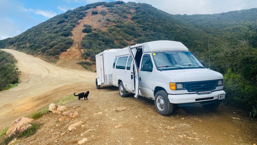 I followed her to one of her regular urban stealth camping spots, which I won’t reveal here for her privacy. I put up all the window shades, then settled in to watch videos on my phone, rather than on my iPad and Bluetooth speaker, to keep the volume down. I slept well on the side of the road. The next morning we met at a nearby park. I let Lister wander around a bit while she made me coffee. We talked a bit more until she had an 8:00 am meeting. That’s when I set off toward San Francisco. But that’s a story for another day.