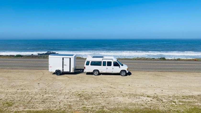 This part of California does NOT like van lifers. I was greeted in Monterey County by a sign saying “No overnight parking or camping next 72 miles.” The few and far between campgrounds are expensive, full, and booked through the end of time. The ones I saw along the PCH even prohibit vehicles longer than 24 feet, which rules out my van and trailer (the van alone is barely short enough to qualify). So this left me no choice but to blast through this area in a single day, rather than slowing down and enjoying the ride. My schedule worked out so that I was able to dedicate a non-work day to do this. I’m glad I did, but I would’ve enjoyed it more if I’d been able to slow down a bit.