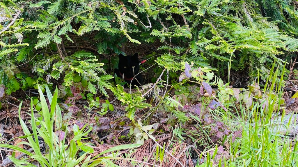 I missed crossing the Oregon border until I was already passing the sign. It was a bit of a non-event. A little while after, I took one of the many turns off US 101 heading down toward the coast to stop for lunch. I didn’t make it to the coast, but I was a short walk from one of the many rivers about to drop into the ocean. It was a good enough place to make myself a buffalo chicken ranch salad, as well as let Lister lose himself in a shrubbery.