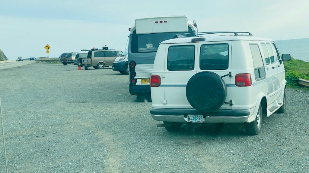 Finally, I stopped at a large overlook listed on iOverlander. There were already five vans plus a bus parked in this lot. There was barely room for me to fit, but I managed to find a place to park without blocking anyone else in. I decided to try it. Safety exists in numbers, right? But to hedge my bets, I found another nearby place to stay a little but off US 101 to save as a backup, just in case we did all get kicked out in the middle of the night. That seemed wise, considering what kind of luck I’d been having today.