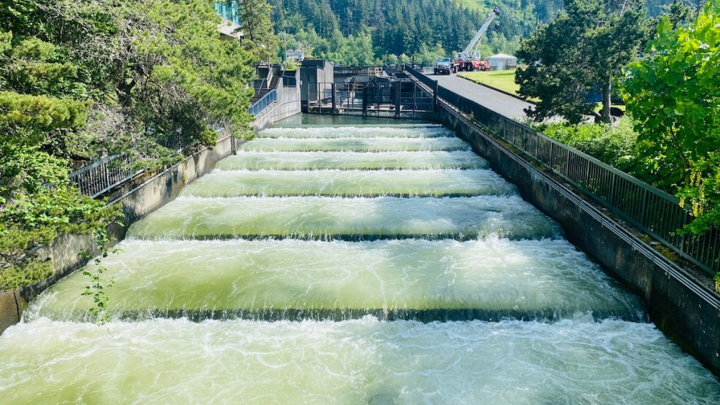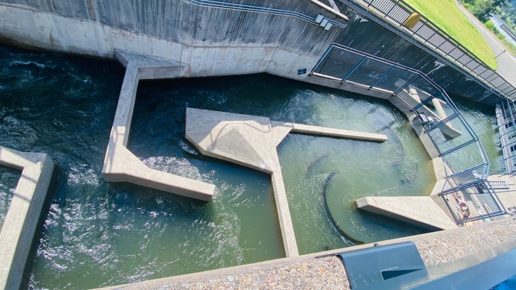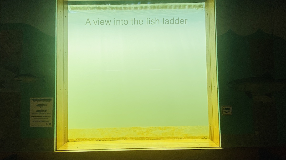 One big problem with dams is that they block fish from reaching their spawning grounds, but Bonneville has an extensive “fish ladder” system that enables them to swim around the dam and continue up the river. The visitor’s center has an underwater fish viewing area, but unfortunately, there wasn’t much to see while we were there.
