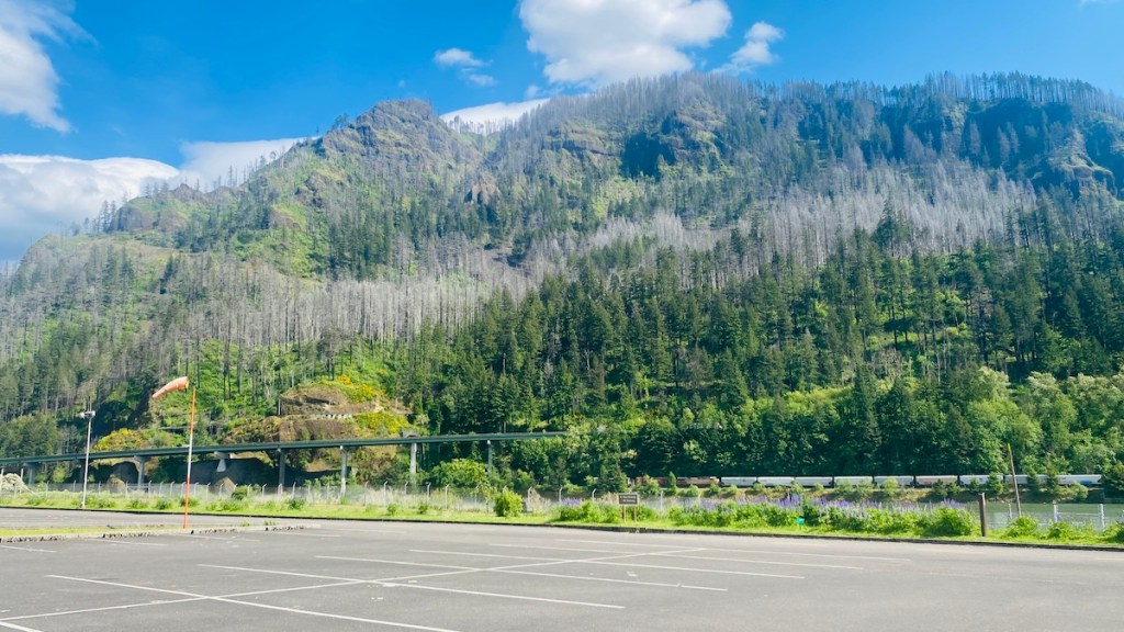 From the parking lot, as well as all around this section of the river, there are vast swaths of forest with dead trees. These are the scars of a forest fire a few years ago that started with some kids playing with a smoke bomb, according to Darryl. It’s scary to see the signs of just how close the fire got to this power plant, as well as nearby towns. Darryl says it spread so quickly it was a struggle to stop it from jumping across the Columbia River over to Washington, never mind keeping it away from I-84 on the Oregon side.