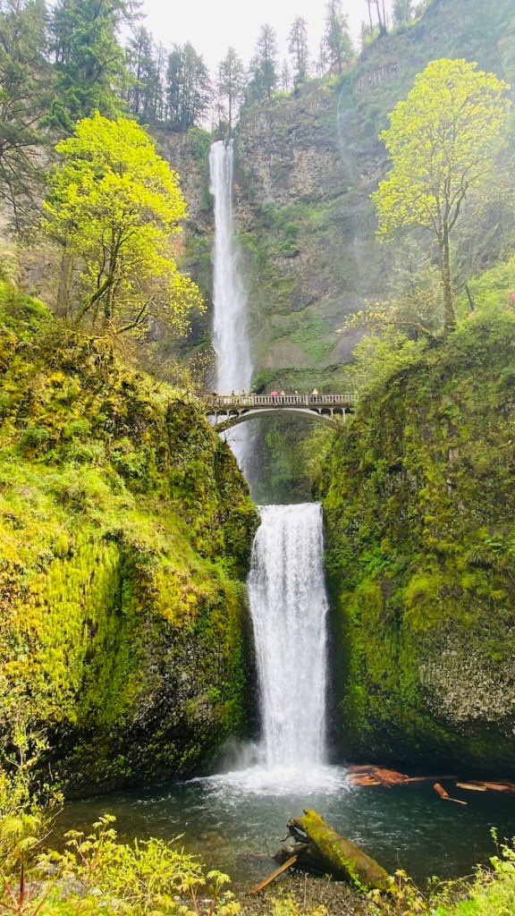 This is the Big Kahuna of the waterfalls in the Columbia River Gorge. It has two levels, the top of which drops 542 feet to a small pool, after which there’s a second drop of 69 feet (nice).