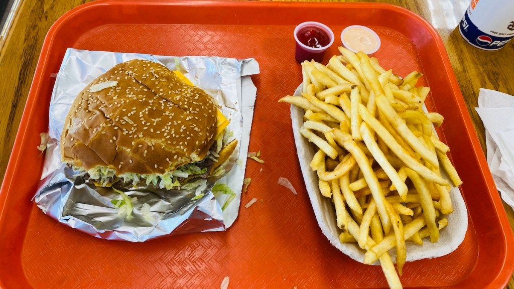 At Glen’s recommendation, I had a late lunch at Miner’s Drive-In. It wasn’t the cheapest burger and fries I’ve ever had, but they were also huge. The burger was tasty. The so-called “fry sauce” was amazing. I didn’t need more than a salad for dinner, which was just as well because it was in the Cabela’s parking lot, not somewhere I want to set up camp and an outdoor cooking station like I did earlier this week.
