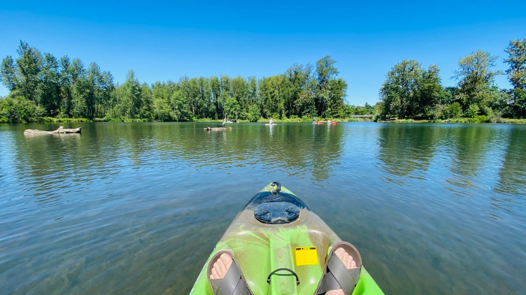 Summer is officially here, and the weather got hot this weekend. On a whim, I looked for anywhere near Cottage Grove that rented kayaks and found Northwest Canoe Tour. They’re based out of Alton Baker Park in nearby Eugene, and give you a chance to try canoeing, kayaking, or stand-up paddleboarding on a shallow, quiet canal in the park built specifically for this purpose. The safe location appealed to me even more than it being nearby, so I booked a two-hour rental. As I was preparing to drive the van there, Keith handed me the key to the Miata. Oh, no, twist my arm.