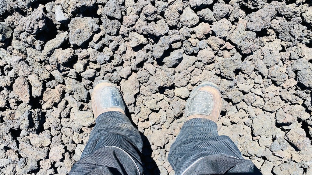 I had to take the opportunity to put my feet on the volcanic rocks. I also enjoy taking pictures of my apocalypse bike in apocalyptic landscapes.
