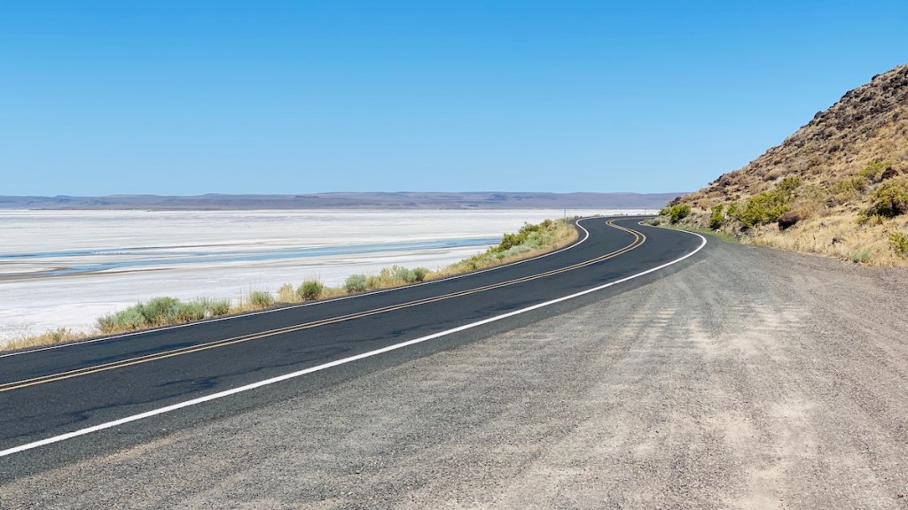 Before long, I was driving up the “shore” of “Lake” Abert. You can see how vast it used to be but today there’s just a tiny sliver of water in the middle. I suspect that’ll be gone, too, in the next several years.