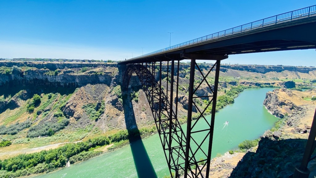 My next stop was Twin Falls. In 1974, Evel Knievel was here to try jumping a rocketcycle across the Snake River Canyon. The attempt failed, but the ramp is still here today. I thought about trying to jump across it myself on my KLR, but the bike decided it didn’t like the wind direction, so we didn’t do it.