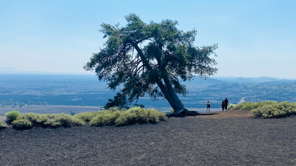 I made it to the top, though. A lone tree clung to the far side, with many exposed roots because it simply can’t sink them into the cinder cone. The view over the other side of the cone was amazing.