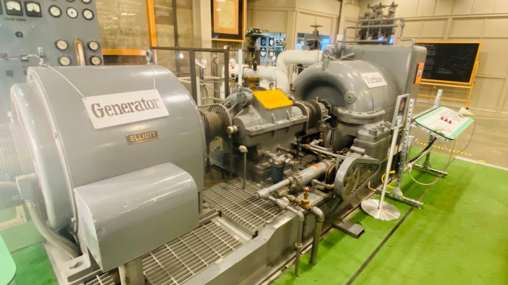 This is where the steam turbine spun a generator and produced the world’s first electricity created from nuclear power. To demonstrate the concept, the scientists strung up four light bulbs next to the generator and connected them to it. They lit up. The next day, they ran the entire facility on nuclear power.