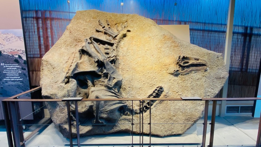 You’re never supposed to touch the exhibits, except when given explicit permission to do so. And here, there are a few dinosaur bones, still half buried in the rock, that you’re encouraged to reach out and touch. So I touched a dinosaur, a creature who died around 100 million years ago. What an experience!