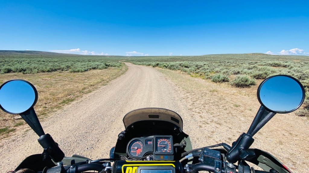 I knew how to get back to camp, but I asked my Garmin to give me a route anyway. I knew there was a gravel road shortcut back to camp. It ended up taking me a different route than I’d planned on, but I remembered Google trying to take me out to Harper’s Corner by some strange route through the park as well when I first looked it up. I decided to give it a try since I could tell from the ETA on my Garmin that I had time to backtrack and go back on US 40 if I had to.