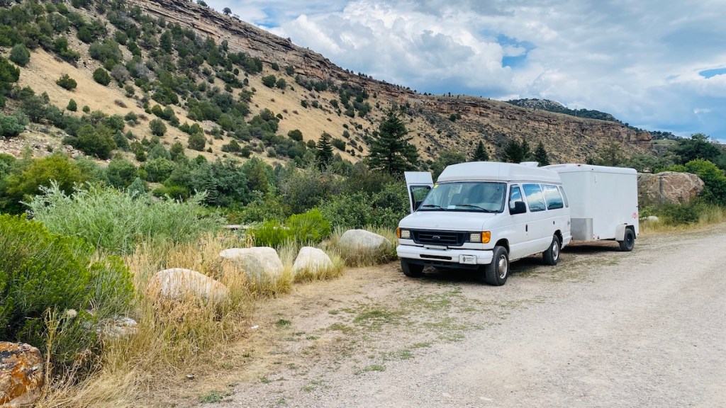 After stopping for supplies in the town of Rifle (the closest thing to civilization I’d seen in a while), I hopped on Interstate 70. Most of it was a pleasant, relatively slow 65 mph drive through the mountains. But there was one section that was absolutely terrible. The bumps were so bad that they knocked open cabinets that I’d double locked. Contents spilled out all over the van. The breakdown lane was about half a lane wide, so I couldn’t even pull over. The rest areas were all close so I couldn’t stop there, either. I ended up stopping in a closed rest area off-ramp, quickly reassembling the van, then getting back on the highway.
