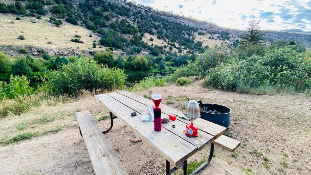 My destination was Wolcott BLM Campground. It doesn’t offer much, but there are a few campsites with picnic tables and fire rings in addition to the day use area. It’s right next to the Eagle River, with scenic mountains just on the other side. For $10 a night, it’s a good deal. I managed to get the last available campsite.