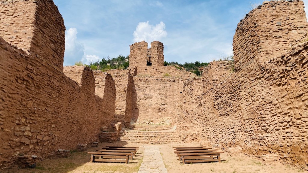This is the inside of a large church (same one as in the top photo) that was built between 1621 and 1625. The Spanish said “We built a church for the native inhabitants,” while the Jemez people said “The Spanish made us build this church for them that we didn’t want.” Indeed, the Jemez eventually revolted against the Spanish and drove them out for a while.