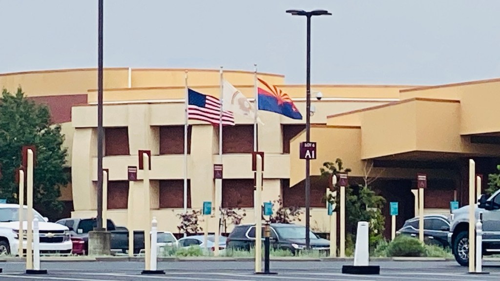 About half an hour outside Flagstaff, I saw the Twin Arrows Casino and Resort. This is very close to the ruins of the old Twin Arrows Trading Post, a Route 66 landmark where we stopped last year. The resort was built in 2006 and still looks brand new. And then the words “Overnight parking” flashed by on the electronic billboard. On a whim, I took the exit and decided to investigate. The Cracker Barrel parking lot in Flagstaff was quite crowded last year, and I wasn’t sure if I’d fit there with the trailer this time around.