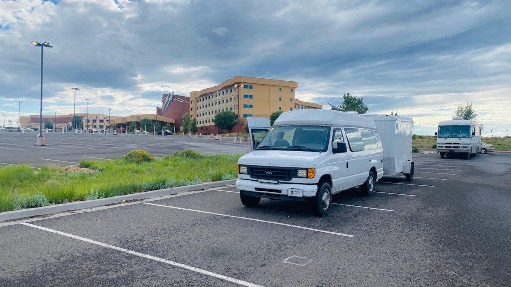I started catching up on some work, and soon an approaching voice said, “Smokey?” It was one of the guys from the HOWA caravan I’d camped with in Pahrump back in April! He, too, is slowly on his way back toward the Arizona desert for the winter. He told me he’d actually been camped here for a couple of weeks! Casinos are usually like Walmart or Cracker Barrel — good for a quick overnight, but then it’s time to move on. He told me he talked to security, and they said they don’t care how long people stay. Some have stayed for months. All they care about is that you don’t make a mess or cause trouble. They do patrol the lots frequently, but that just makes the place safe. We talked a bit more, then got back to work.