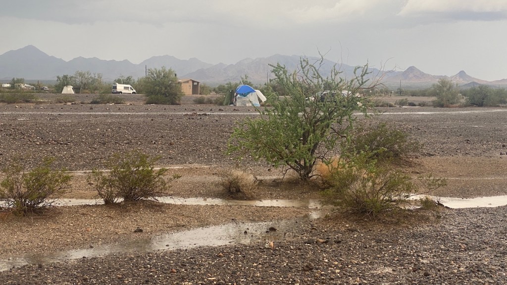 As usual, I plan for the worst and hope for the best. I was all packed up and prepared to move if I had to. If I wasn’t, the flood would come ripping through here and wash my camp away. So fellow La Posa South campers, you’re welcome. I prevented the flood by being ready for it so that we wouldn’t need to be.