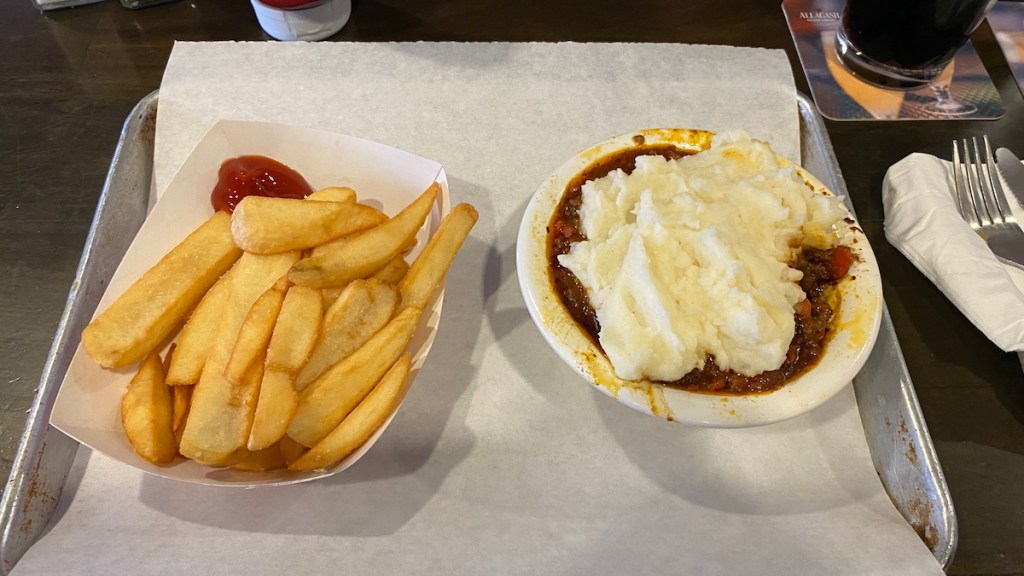 So I resigned myself to spending a few hours exploring Pasadena on foot. I was right on Route 66 and the route of the Rose Parade that will be happening in a few days. But what sucked me in was finding Lucky Baldwin’s Trappiste Pub. I was just looking for lunch and found an English pub, which sure beat waiting around at the tire place. I had the Cottage Pie and a couple of 2am Bike Ride coffee and vanilla stouts by Fall Brewing Company out of San Diego. It was a much nicer waiting room than America’s Tire had.
