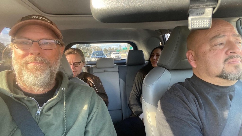 So we all hopped in Reuben’s mom’s car to get something to eat instead. At least this way we’d have a roof over our heads if it rained again.