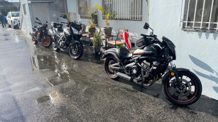 Ironically, it never rained again the rest of the day. But the unpredictable weather didn’t stop us from having a good time, with or without motorcycles. Bikes are how I met these people, but our friendship doesn’t stop there. I enjoy shenanigans with my LA crew. It kind of blows my mind that I even have an LA crew at this point, but there we are. I’m not much for cities, but I really like LA, and these people are a big reason why. The amazing motorcycling here is a close second, I’ll admit.