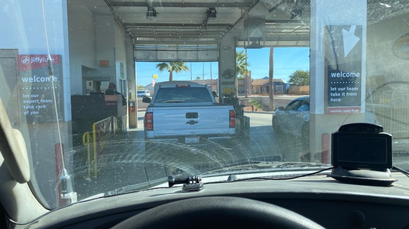 I didn’t have that much to get done. At the top of that list was an oil change. I had a good experience at Jiffy Lube in Yuma last spring. Since I’m staying on BLM land I’m not allowed to change or dispose of oil myself, even though I’m perfectly capable of it (I did my last oil change myself in Oregon). My wait to get in was short, but Lister still wasn’t amused.